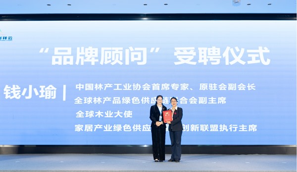 为进一步夯实品牌根基,江西绿洲聘请中国林产工业协会首席专家钱小瑜为“品牌顾问”,总经理王丽萍现场为其颁发证书。钱会长分析人造板行业现状时指出,行业需突破旧有路径,必须向“品质化、品牌化、高端化”转型。她高度评价“五彩祥云板”:“这不仅是技术突破,更是产业价值重构,为松木资源可持续利用与高端板材研发提供了生动实践。”