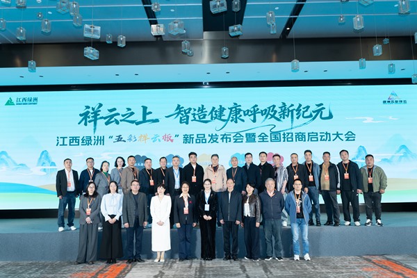 2025年11月11日,“祥云之上,智造健康呼吸新纪元——江西绿洲‘五彩祥云板’新品发布会暨全国招商启动大会”正式开幕。中国林产工业协会首席专家钱小瑜、井冈山经济技术开发区党工委副书记王洲嫔、吉安市政府原党组成员、井冈山经济技术开发区原党工委书记、吉安赣商总会党委书记刘志坚、吉安市人大常委会原副主任、吉安赣商总会党委副书记胡小勇、中国林产工业协会纤维板专业委员会秘书长秦莉等主要领导莅临本次大会,参加本次大会的还有吉安市工商联女企业家商会会长、吉安市家居建材联合商会会长以及来自全国各地的经销商、供应商合计100余人,置身创新的盛大场景。