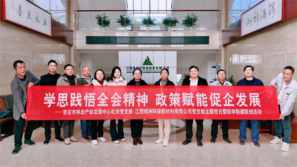 2025年11月20日,江西绿洲环保新材料有限公司党支部联合吉安市林业产业发展中心党支部,举办11月主题党日暨“联学联建联创”活动。此次活动以学习党的二十届四中全会和“十五五”规划精神为核心,既创新了党建形式,更搭建起政企沟通桥梁,为林业产业高质量发展凝聚了合力。